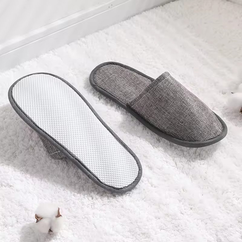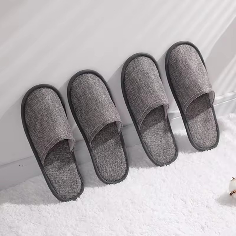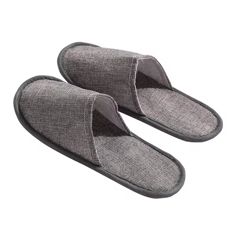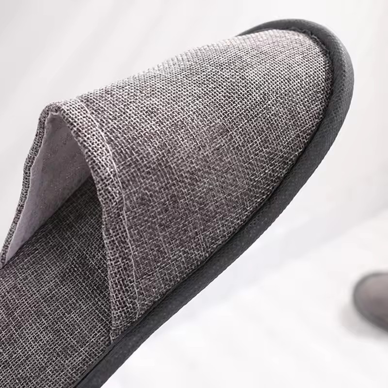 高品质时尚室内酒店 SPA 旅行近趾亚麻拖鞋带袋刺绣徽标