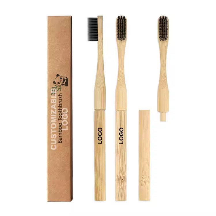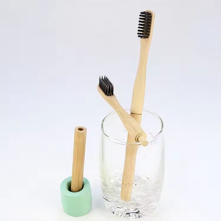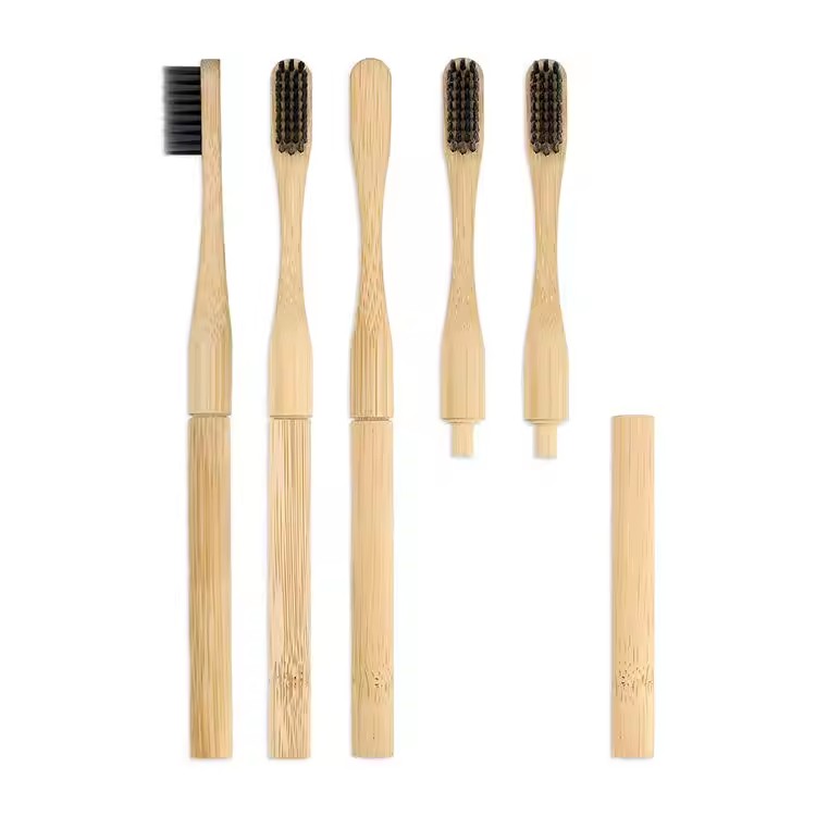 100% 天然可堆肥圆柄可更换环保毛竹牙刷
