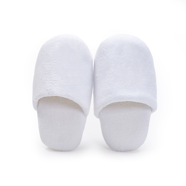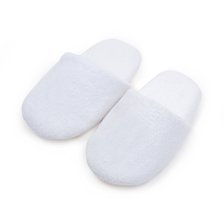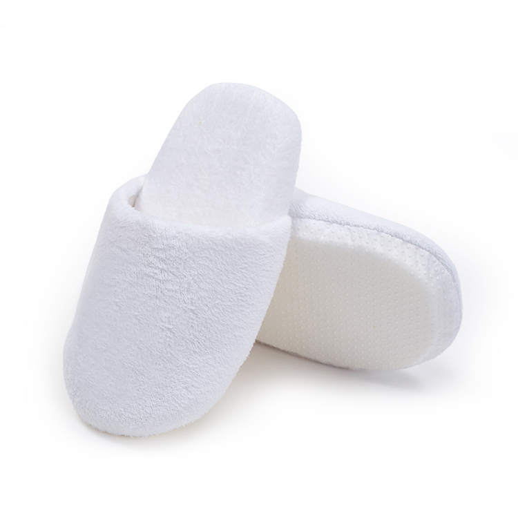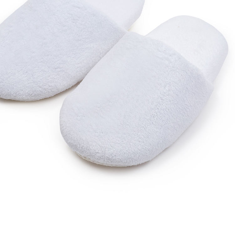 定制华夫饼酒店拖鞋带徽标刺绣白色闭趾室内拖鞋