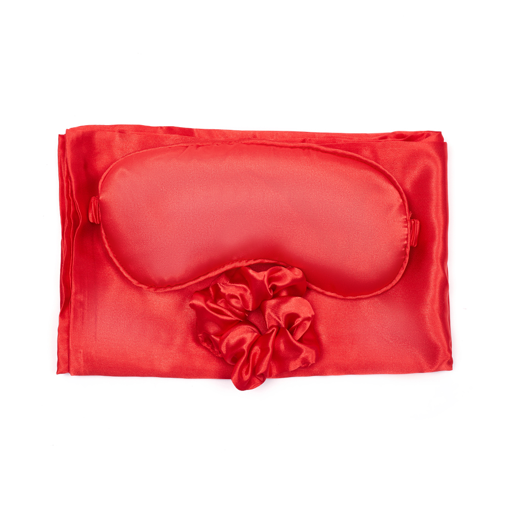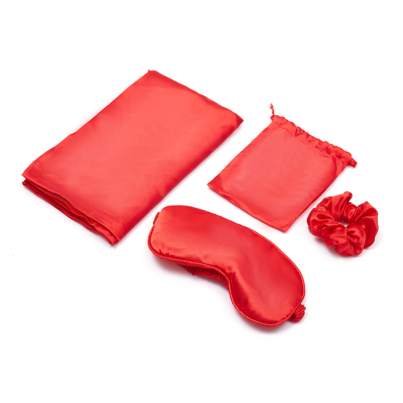 三合一仿丝眼罩套装带抽绳袋和发圈发带缎面睡眠眼罩