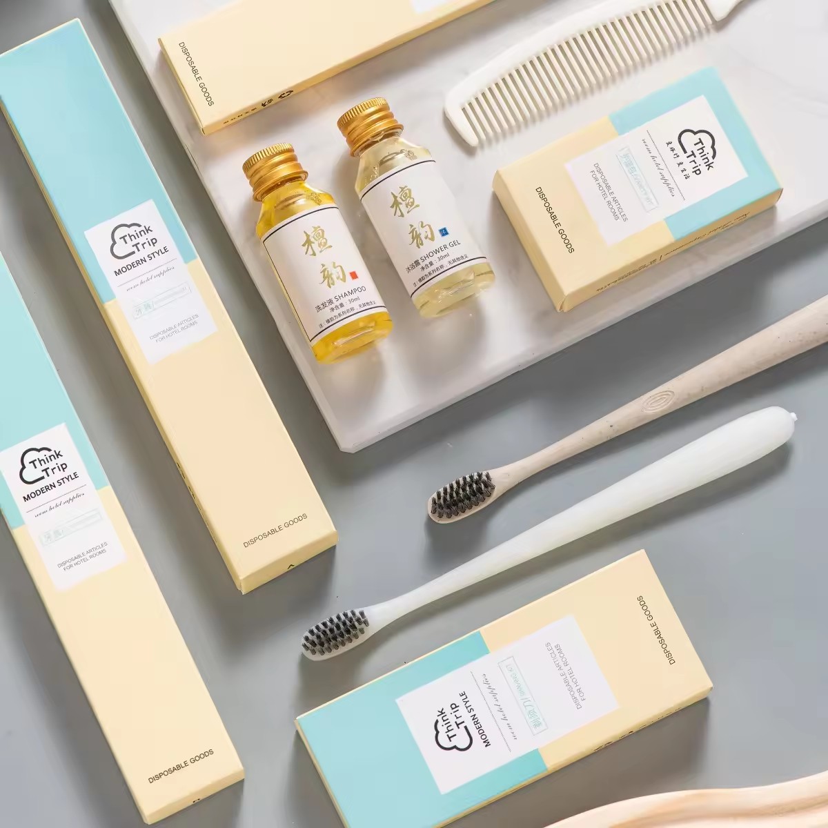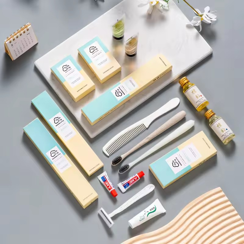 定制徽标沐浴用品套装牙科套件酒店宾客供应商一次性酒店洗漱用品套装