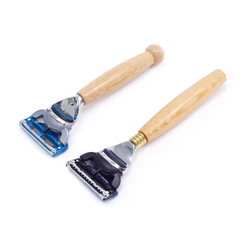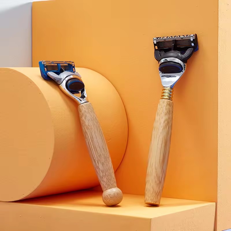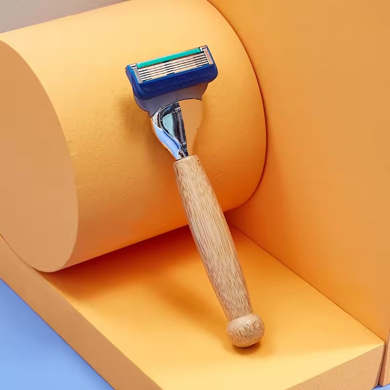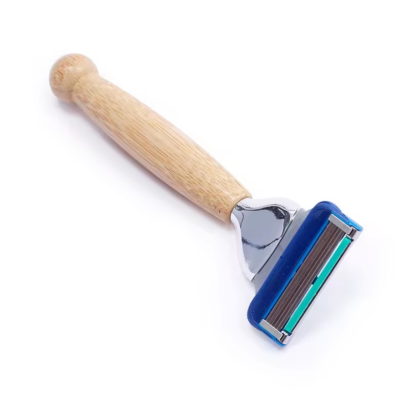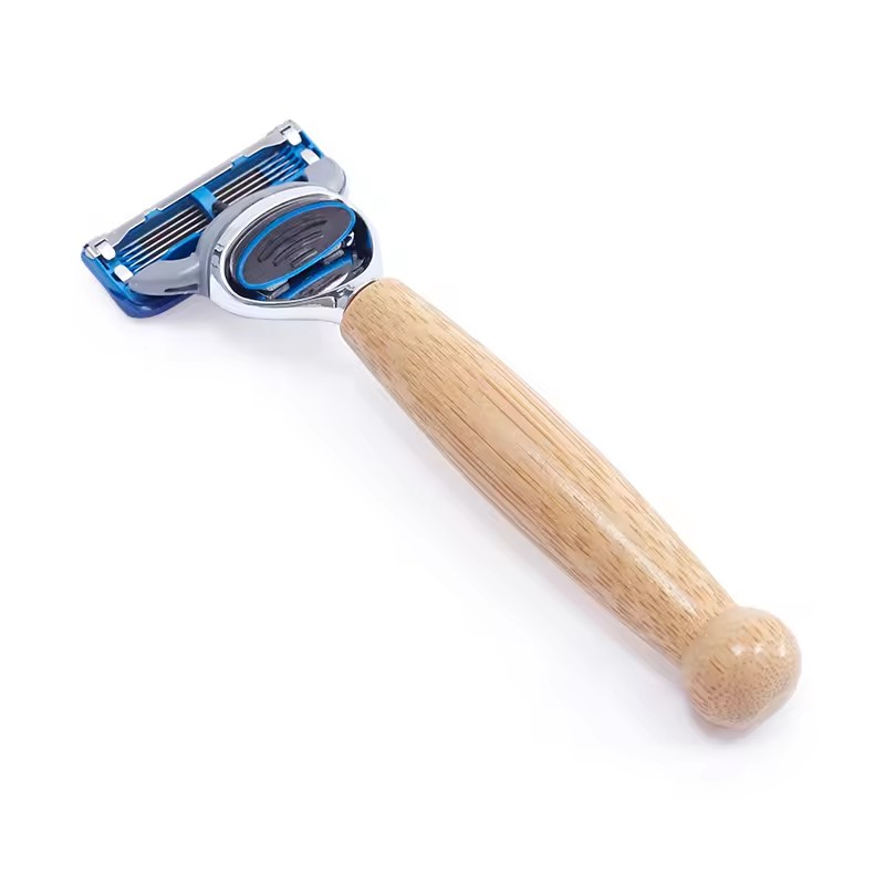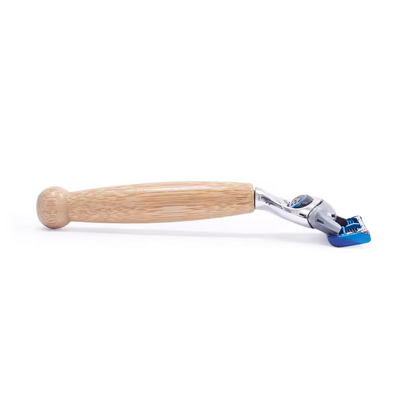 天然手柄竹剃刀,可更换 5 片刀片补充装,适用于生物剃须
